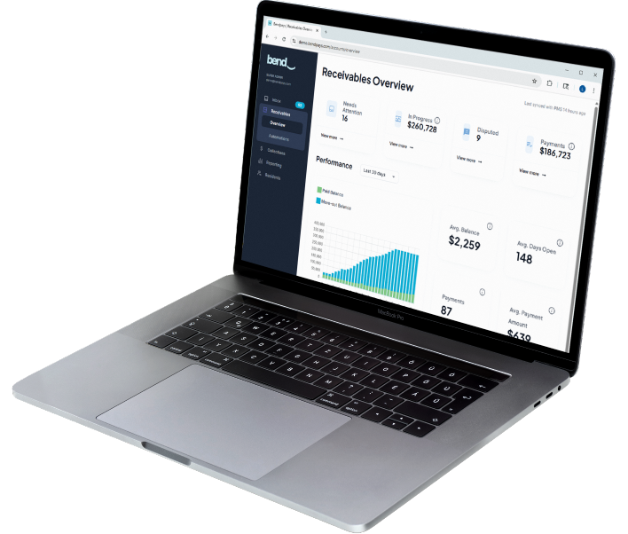 Bend is a first-party receivables automation platform that manages early-stage recovery. It engages residents with branded outreach, flexible payment plans, and compliance guardrails—all without adding staff time.